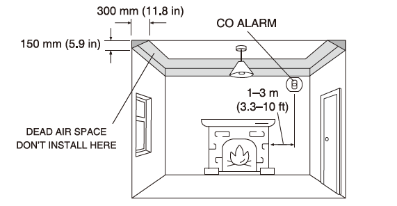 - Ad almeno 1,5 m (5 ft) di distanza da qualsiasi potenziale fonte di CO